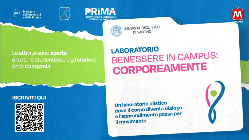 Progetto ProBen Prima - Benessere In Campus: Corporeamente.Un laboratorio olistico dove il corpo diventa dialogo e l'apprendimento passa per il movimento.Preiscrizioni dal 23 Marzo al 10 Aprile.Impianti sportivi del Centro Universitario Sportivo di Baronissi e Fisciano (CUS Salerno).