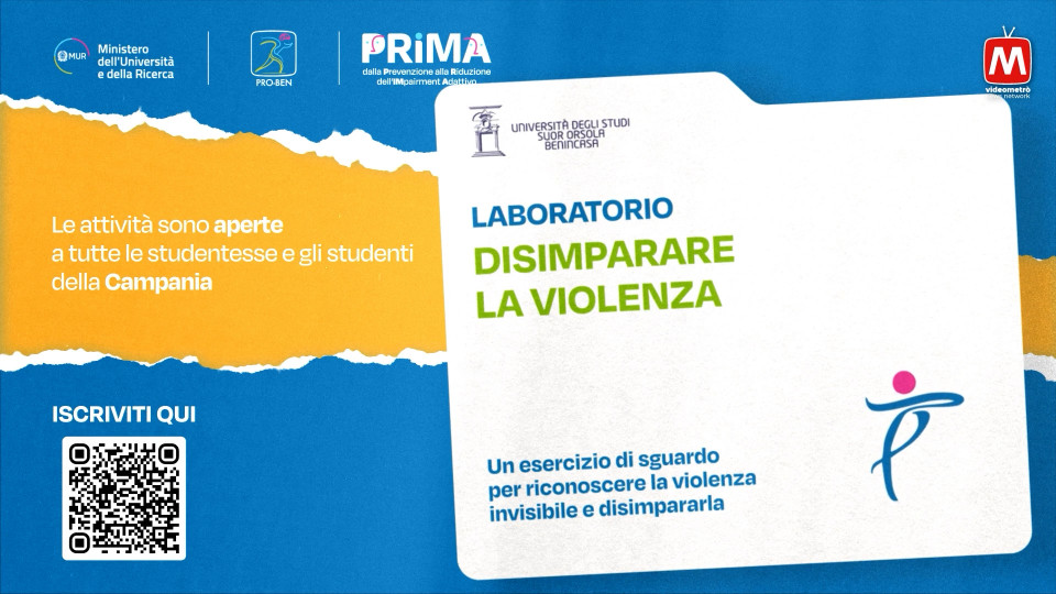 Progetto ProBen Prima - Disimparare La Violenza.Un esercizio di sguardo per riconoscere la violenza invisibile e disimpararla.Preiscrizioni dal 10 Marzo al 10 Aprile.Dipartimento di Scienze formative, psicologiche e della comunicazione, Università degli Studi Suor Orsola Benincasa.