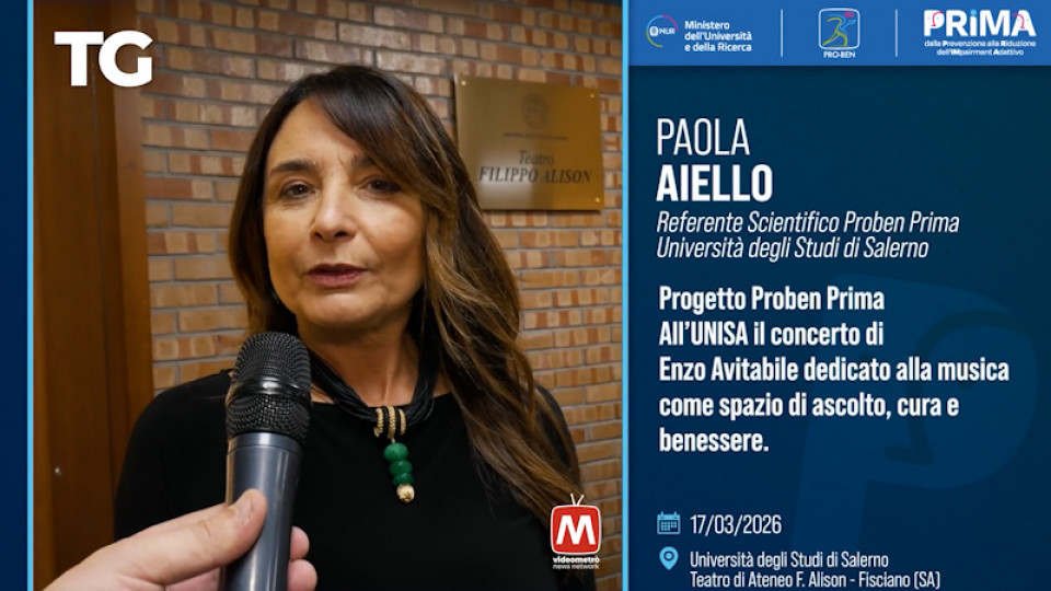 Paola Aiello - Referente Scientifico Proben Prima Università degli Studi di Salerno.Progetto Proben Prima. All'UNISA il concerto di Enzo Avitabile dedicato alla musica come spazio di ascolto, cura e benessere.Università degli Studi di Salerno. Teatro di Ateneo F. Alison -...