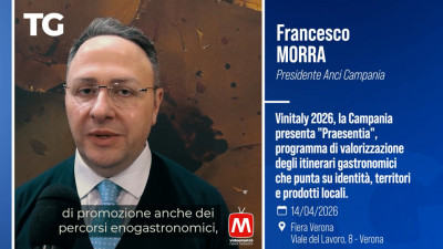 Francesco Morra - Presidente Anci Campania.Vinitaly 2026, la Campania presenta "Praesentia", programma di valorizzazione degli itinerari gastronomici che punta su identità, territori e prodotti locali.Fiera...