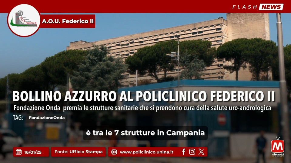 Bollino Azzurro al Policlinico Federico II, Fondazione Onda premia le strutture sanitarie che si prendono cura della salute uro-andrologica.Visita il sito www.policlinico.unina.it