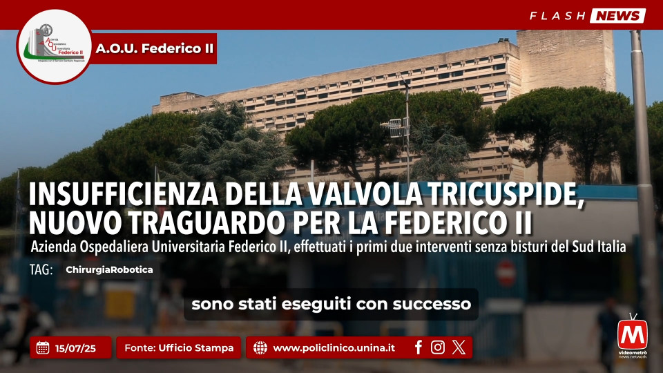 Flash News AOU Federico II - Insufficienza della Valvola Tricuspide, Nuovo Traguardo per la Federico IIAzienda Ospedaliera Universitaria Federico II, effettuati i primi due interventi senza bisturi del Sud Italia.
