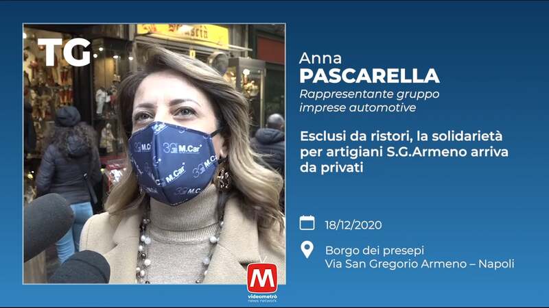 Anna Pascarella - Rappresentante gruppo imprese automotive. Esclusi da ristori, la solidarietà per artigiani S.G. Armeno arriva da privati. Borgo dei presepi. Via San Gregorio Armeno, Napoli.