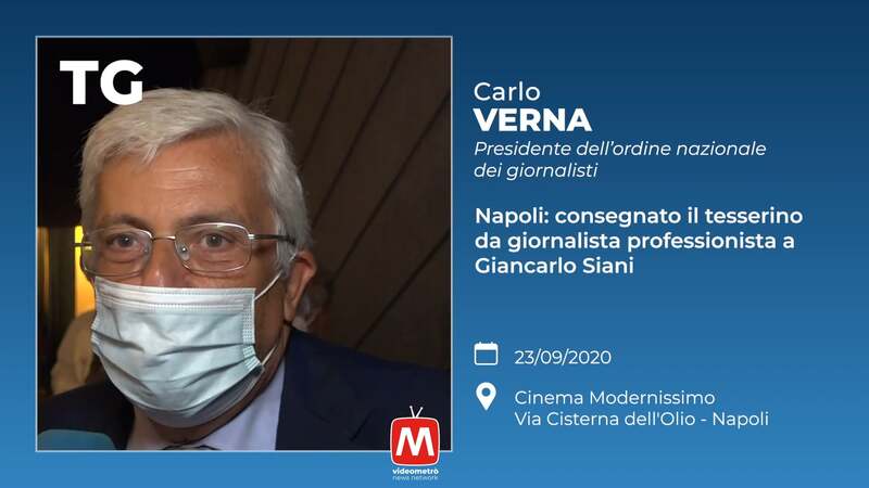 Carlo Verna - Presidente dell'ordine nazionale dei giornalisti. Napoli: consegnato il tesserino da giornalista professionista a Giancarlo Siani. Cinema Modernissimo. Via Cisterna dell'Olio, Napoli.