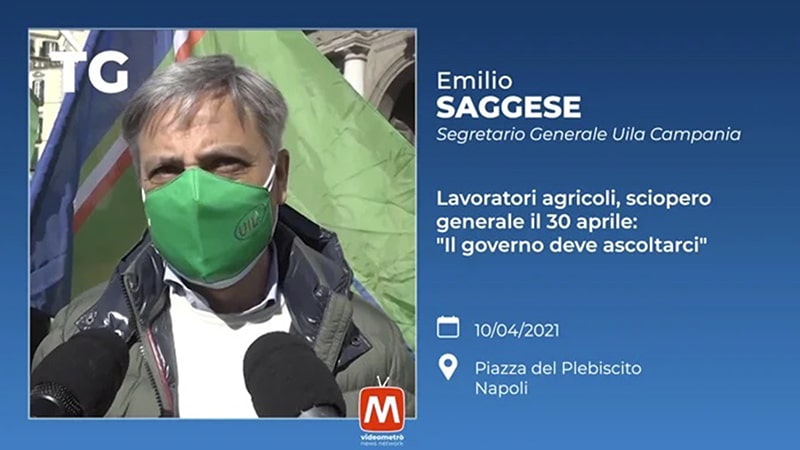 Emilio Saggese - Segretario Generale Uila Campania. Lavoratori agricoli, sciopero generale il 30 aprile: "Il governo deve ascoltarci". Piazza del Plebiscito, Napoli.
