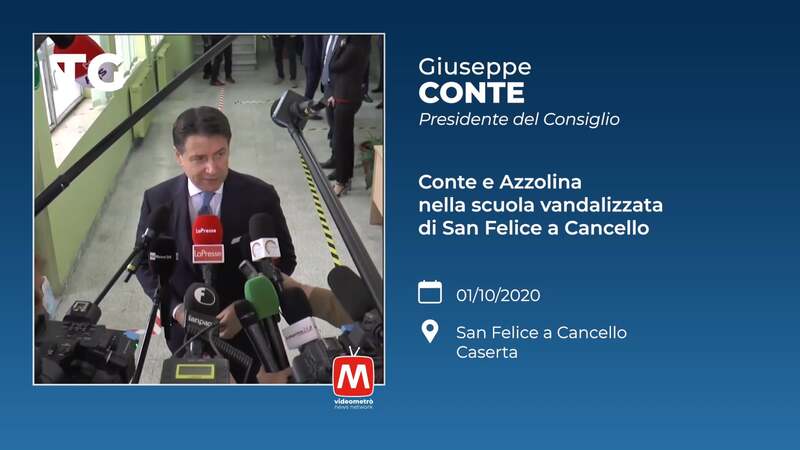 Giuseppe Conte - Presidente del Consiglio. Conte e Azzolina nella scuola vandalizzata di San Felice a Cancello. San Felice a Cancello, Caserta.