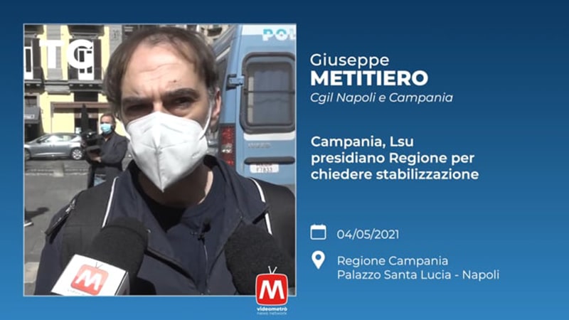 Giuseppe Metitiero - Cgil Napoli e Campania. Campania, Lsu presidiano Regione per chiedere stabilizzazione. Regione Campania. Palazzo Santa Lucia, Napoli.