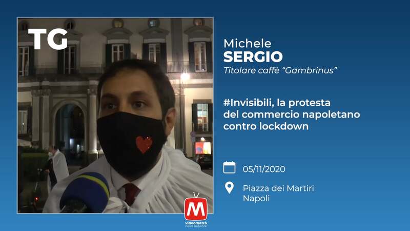 Michele Sergio - Titolo caffè "Gambrinus". Invisibili, la protesta del commercio napoletano contro lockdown. Piazza dei Martiri, Napoli.