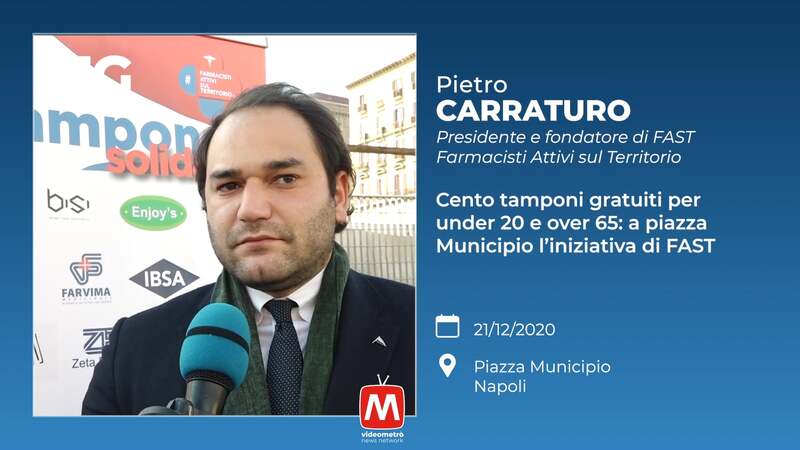 Pietro Carraturo - Presidente e fondatore di FAST Farmacisti Attivi sul Territorio. Cento tamponi gratuiti per under 20 e over 65: a piazza Municio l'iniziativa di FAST. Piazza Municipio, Napoli.