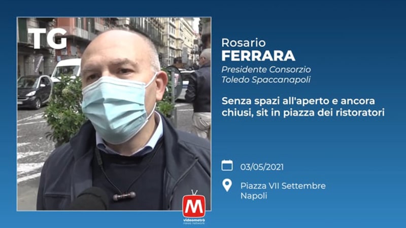 Rosario Ferrara - Presidente Consorzio Toledo Spaccanapoli. Senza spazi all'aperto e ancora chiusi, sit in piazza dei ristoranti. Piazza VII Settembre, Napoli.