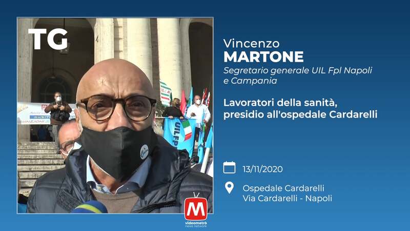 Vincenzo Martone - Segretario generale UIL Fpl Napoli e Campania. Lavoratori della sanità, presidio all'ospedale Cardarelli. Ospedale Cardarelli. Via Cardarelli, Napoli.