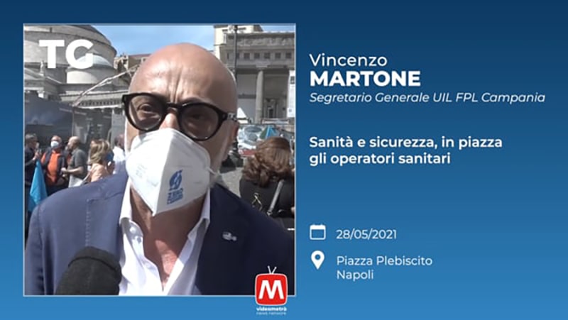 Vincenzo Martone - Segretario Generale UIL FPL Campania. Sanità e sicurezza, in piazza gli operatori sanitari. Piazza Plebiscito, Napoli.