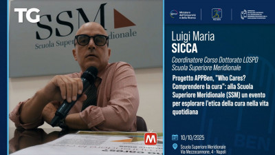 TG 10/10/2025 - Luigi Maria SiccaLuigi Maria Sicca - Coordinatore Corso Dottorato LOSPD Scuola Superiore Meridionale.Progetto APPBen, "Who Cares? Comprendere la cura": alla Scuola Superiore Meridionale (SSM) un evento per...