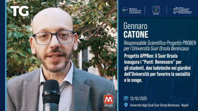 TG 13/10/2025 - Gennaro CatoneGennaro Catone - Responsabile Scientifico Progetto PROBEN per l'Università Suor Orsola Benincasa.Progetto APPBen: il Suor Orsola inaugura i "Punti Benessere" per gli studenti, due ludoteche...