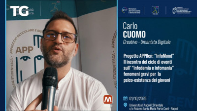 TG 01/10/2025 - Carlo CuomoCarlo Cuomo - Creativo, Umanista Digitale.Progetto APPBen: "InfoMood" II incontro del ciclo di eventi sull' "infodemia e infomania", fenomeni gravi per la psico-esistenza dei giovani.Università...