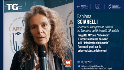 TG 01/10/2025 - Fabiana SciarelliFabiana Sciarelli - Docente di Management, Cultura ed Economia dell'Università L'Orientale.Progetto APPBen: "InfoMood" II incontro del ciclo di eventi sull' "infodemia e infomania", fenomeni gravi...